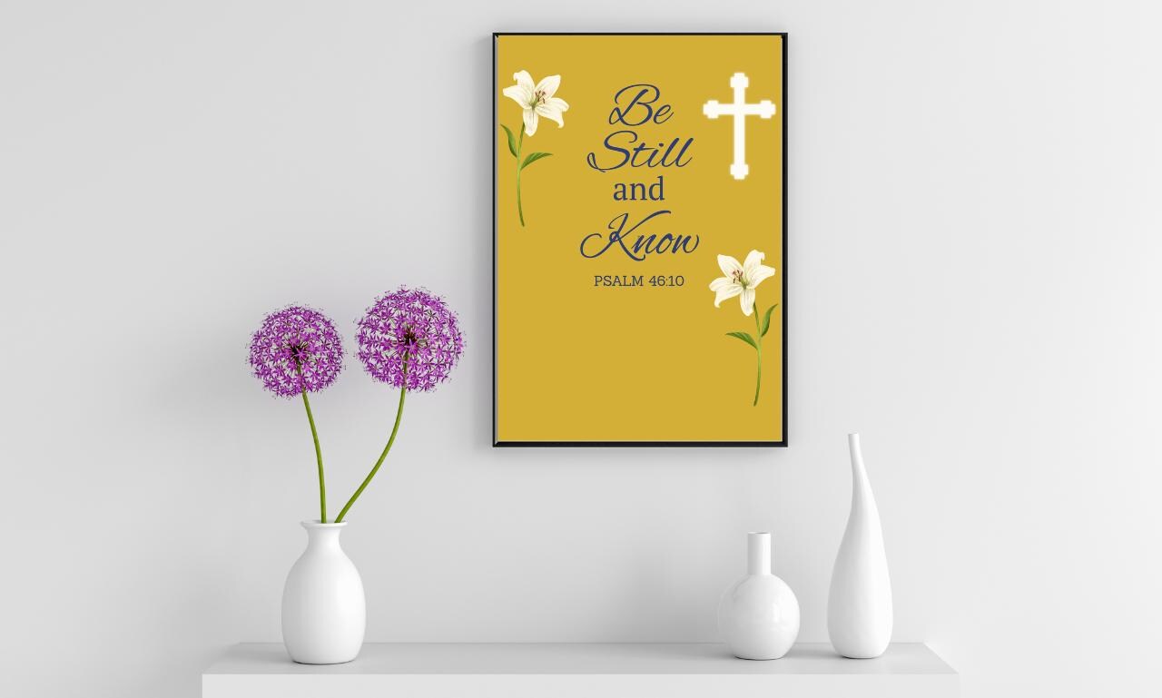 Bring a touch of serenity into your life and space with our faith-based artwork. Embrace the power of this inspirational scripture and let it remind you to be still, knowing that God is always with you.