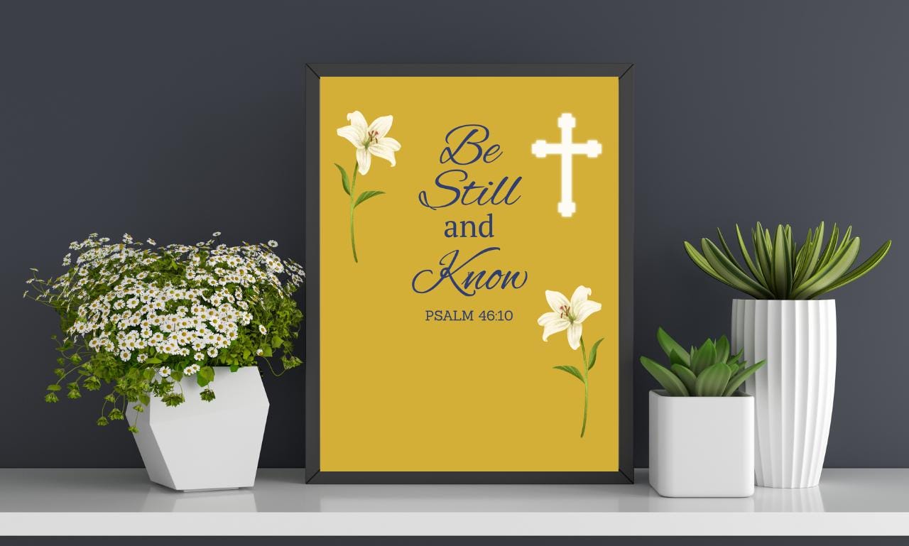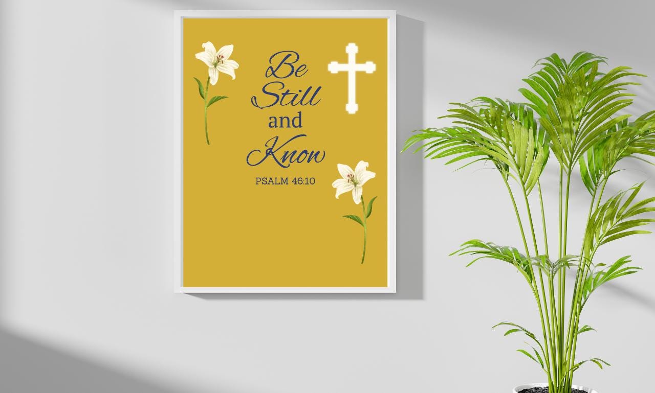 Transform your living space into a sanctuary of tranquility with our "Be Still and Know" Christian digital wall art. This beautiful piece is a source of comfort and a visual representation of the calming presence of God, drawing inspiration from Psalm 46:10.