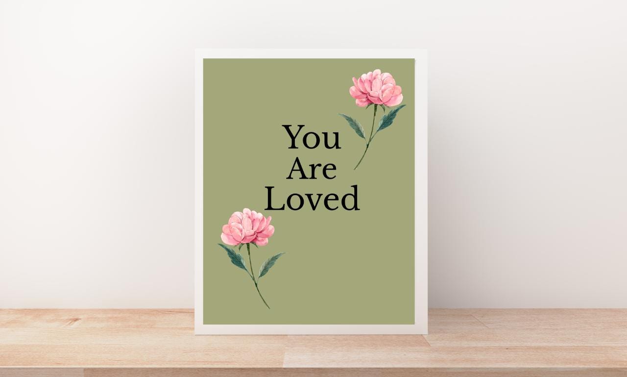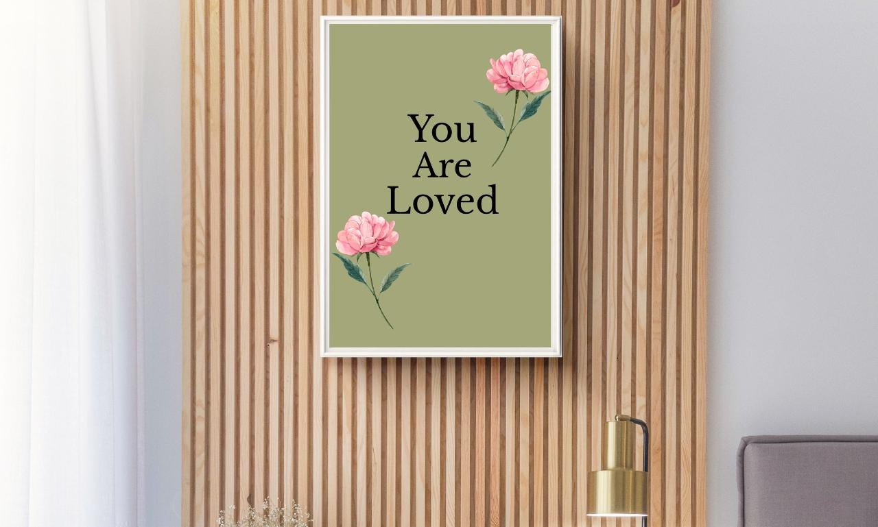 Embrace the soothing message of self-love and positivity with our “You Are Loved” inspirational wall art digital download. This beautiful and minimalist design will brighten any space, serving as a daily reminder of your inherent worth and inner strength. Perfect for your home, office, classroom, or to gift to someone special who needs a little extra love and encouragement.