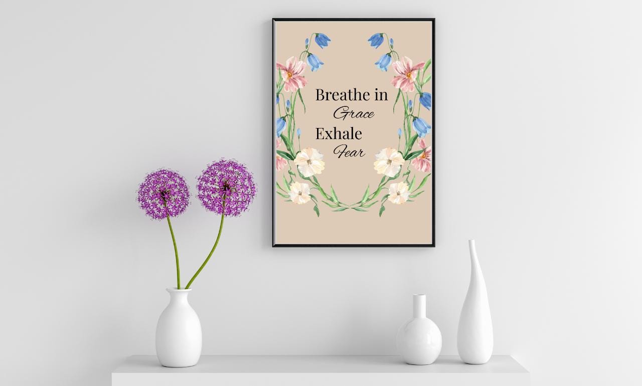 When you purchase this digital art, you'll receive an instant download with crisp, high-resolution quality at 300 DPI. Simply print it at home or through a professional service and frame it for a daily reminder to breathe in God's grace and release fear.
