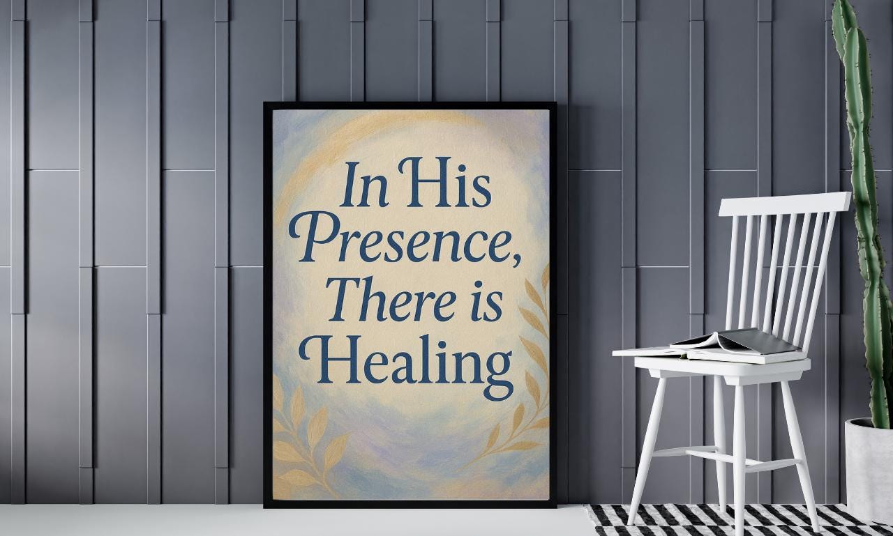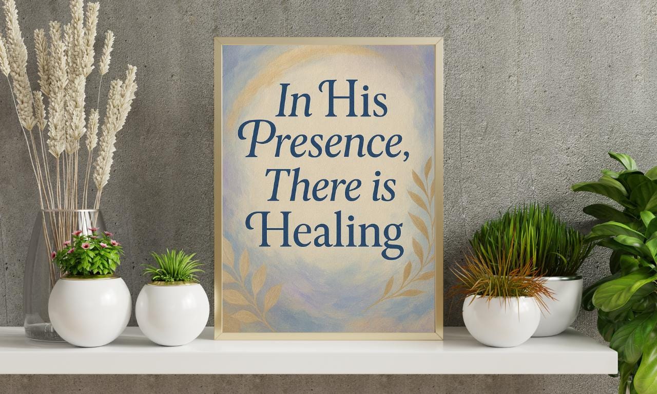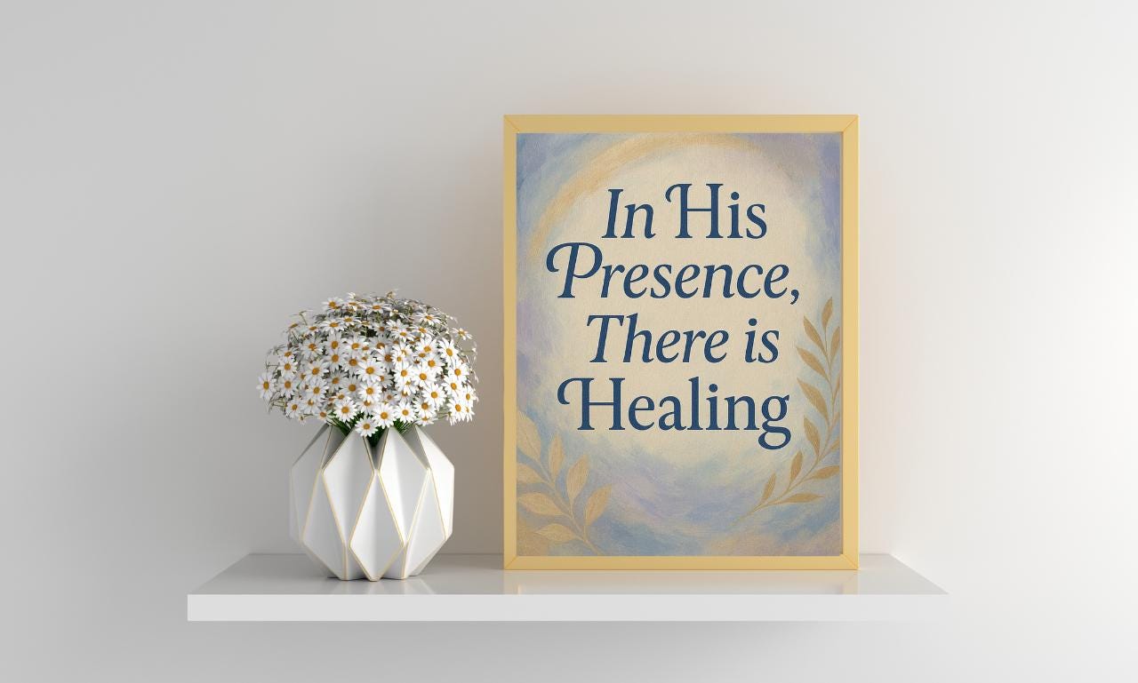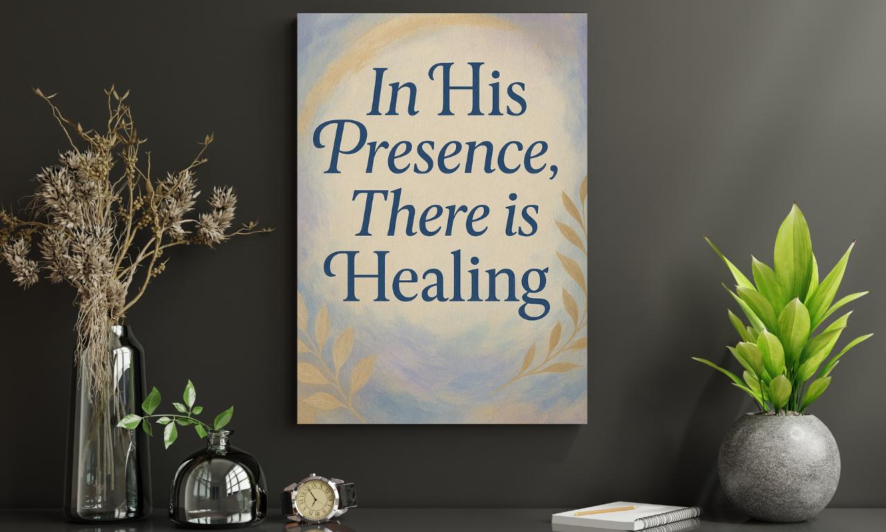 Transform your space with the comforting message of faith with our “In His Presence There Is Healing” digital art print. This beautiful piece serves as a comforting reminder that true peace and restoration are found in Christ. Whether you display it in your home, church, therapy office, or give it as a thoughtful gift, this minimalist design will bring a sense of hope and healing to any environment.