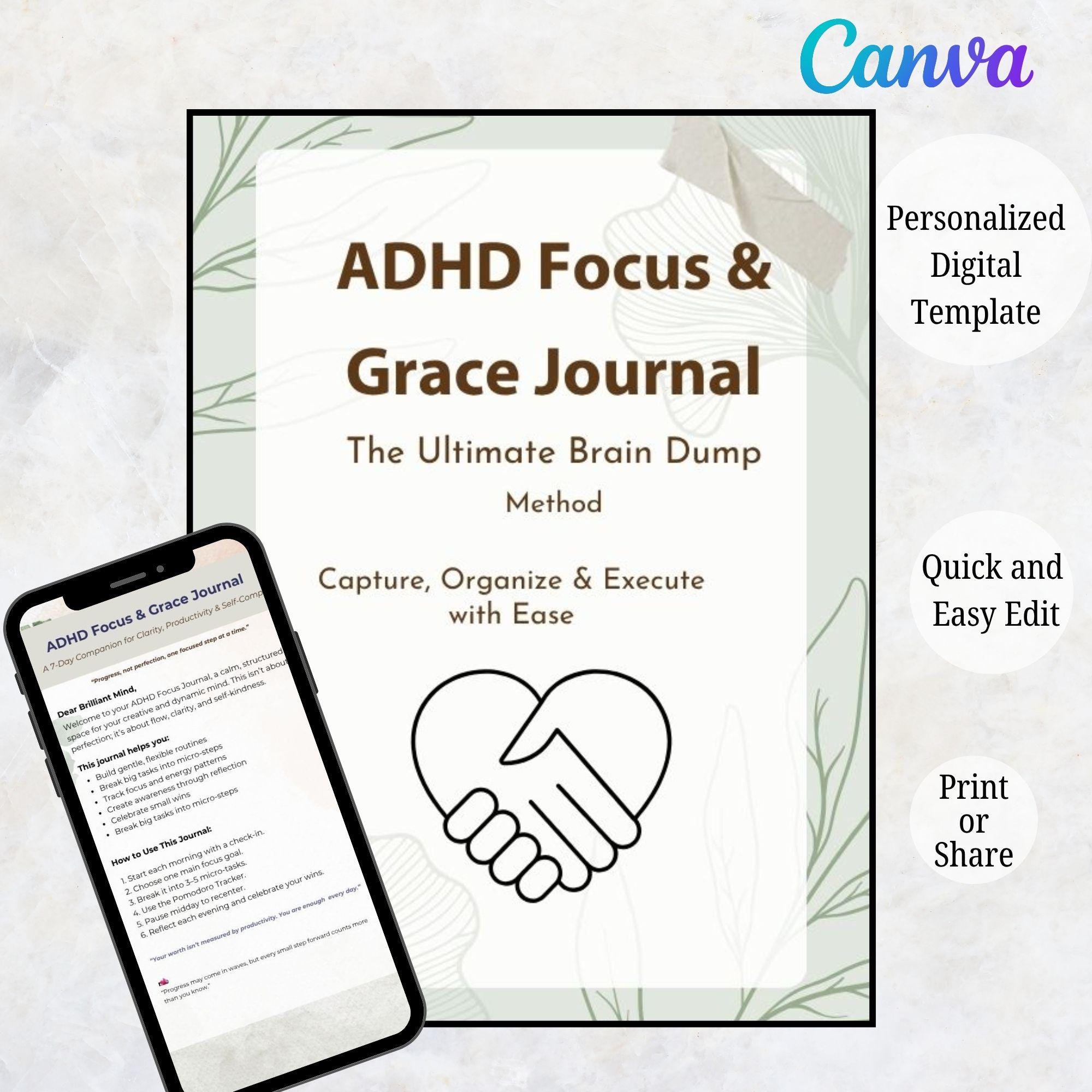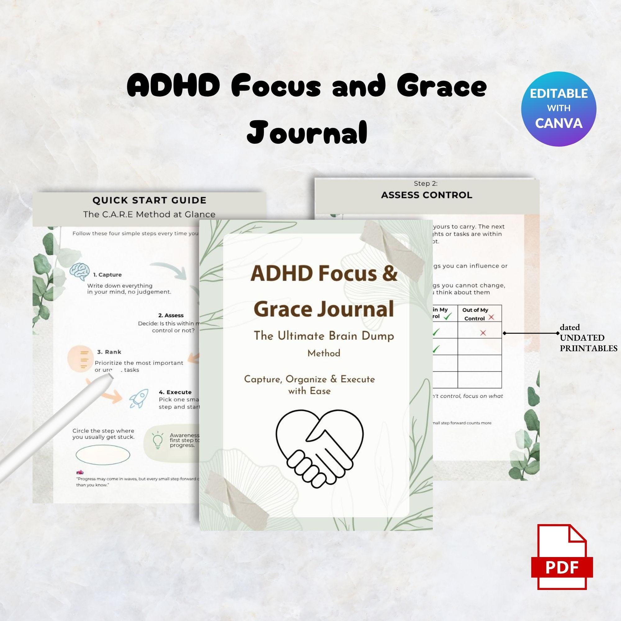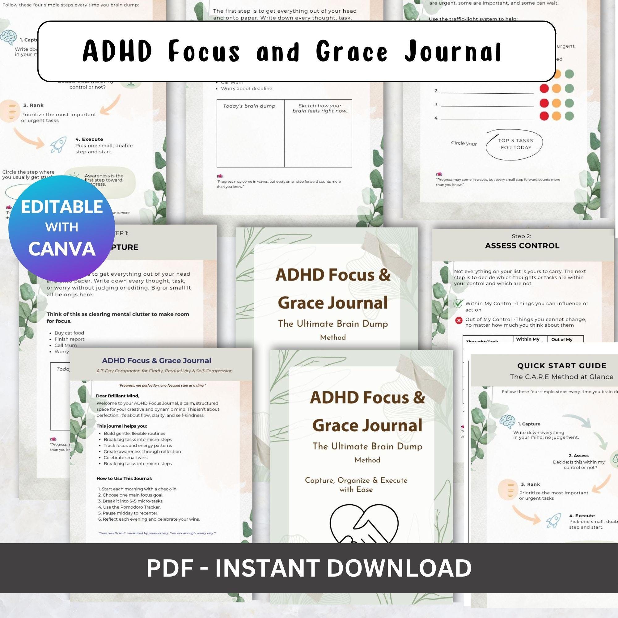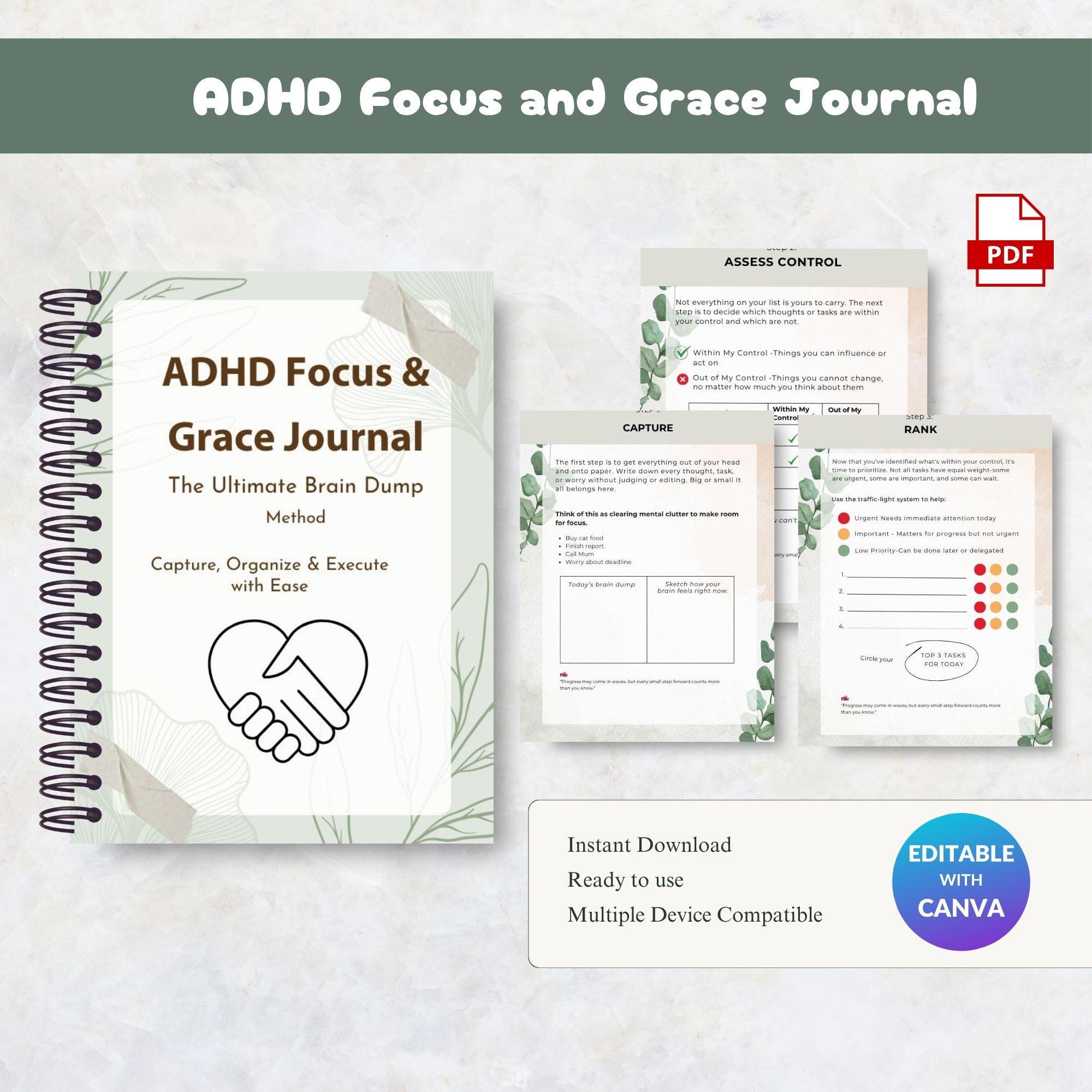 Find balance, focus, and self-compassion with the ADHD Focus & Grace Journal — your daily companion designed to help you organize thoughts, track progress, and nurture grace through every challenge.