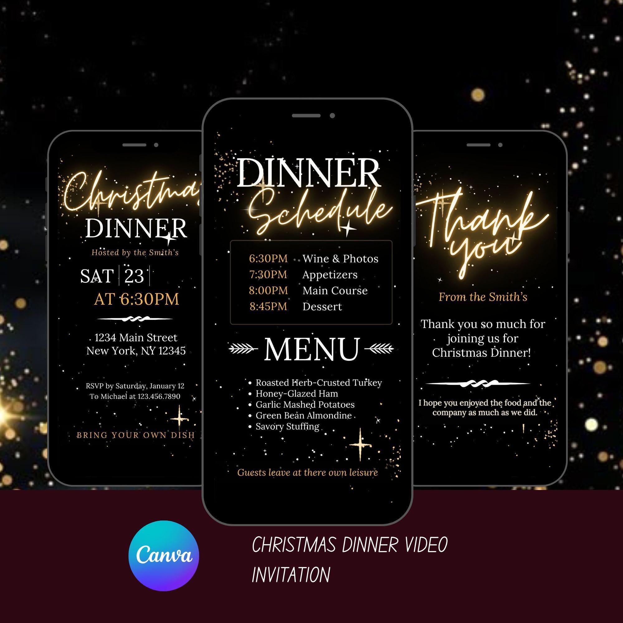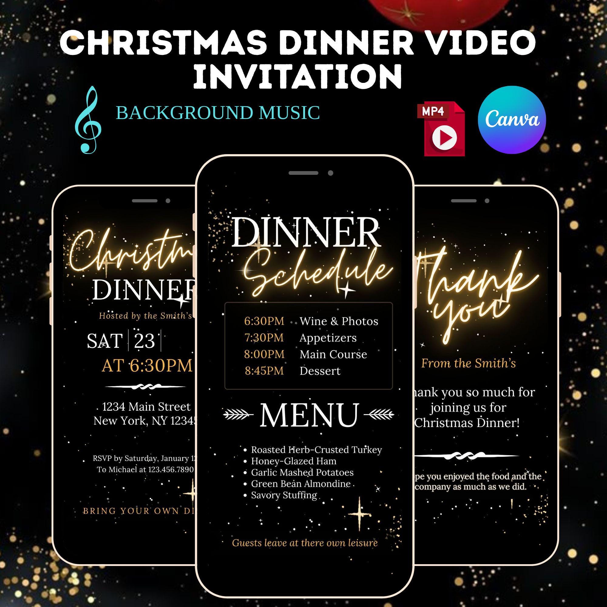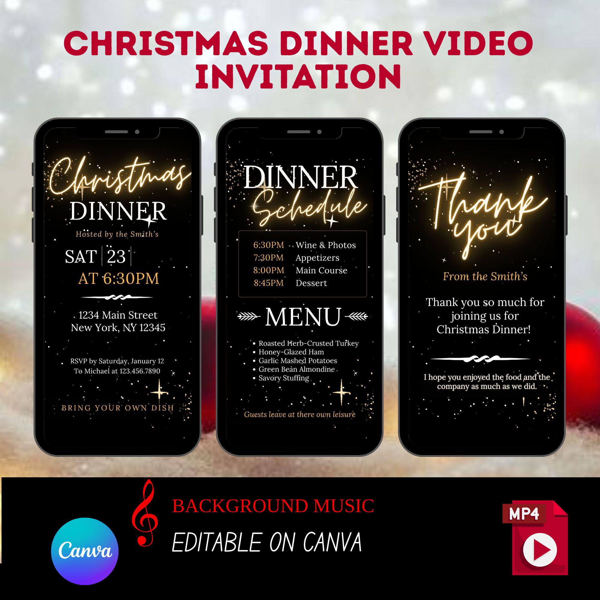 Christmas Dinner Video Invitation | Animated Holiday Party Invite | Editable Digital Xmas Dinner Invitation Template