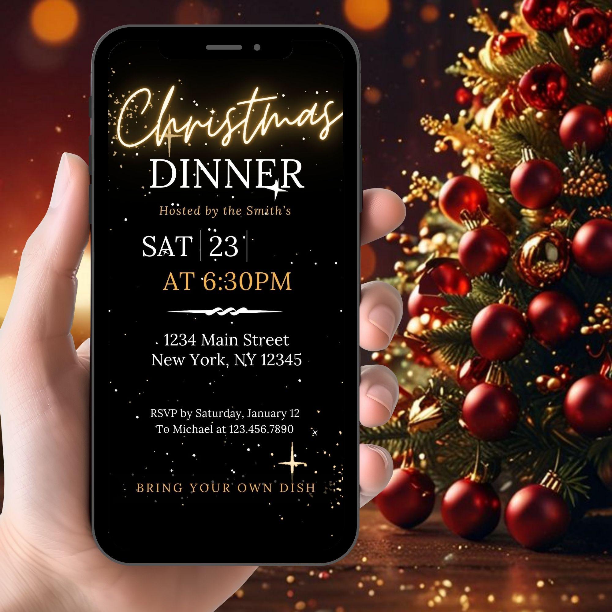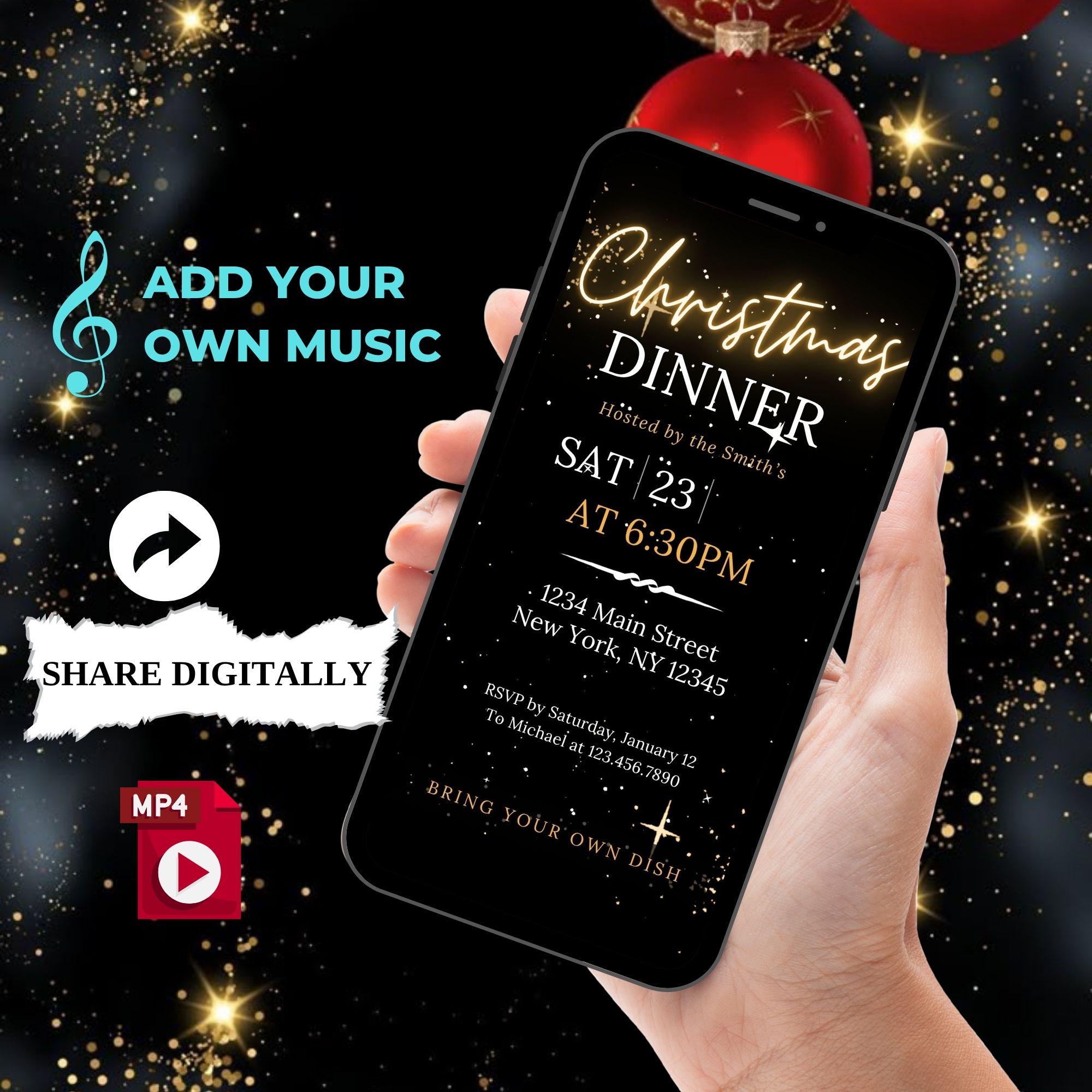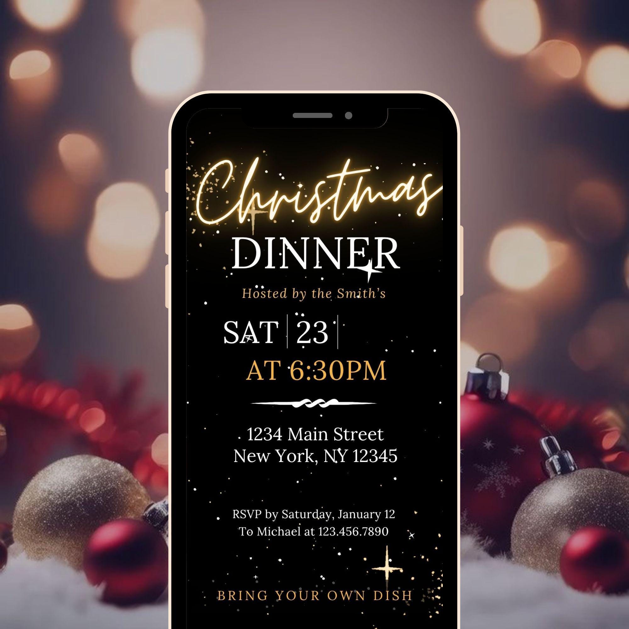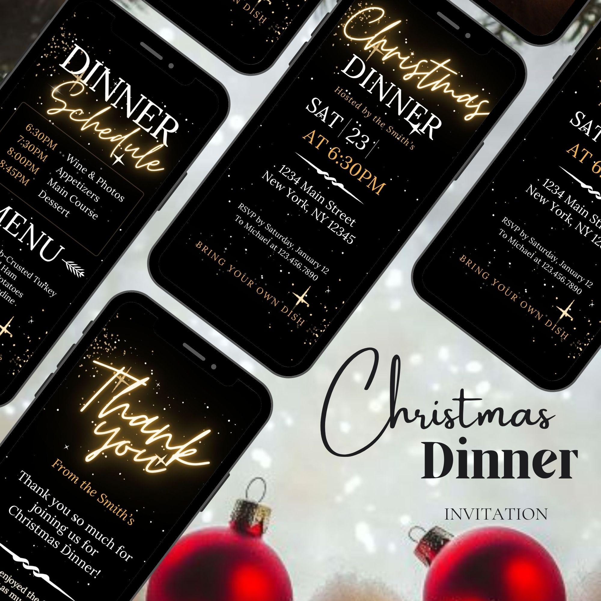 Christmas Dinner Video Invitation | Animated Holiday Party Invite | Editable Digital Xmas Dinner Invitation Template