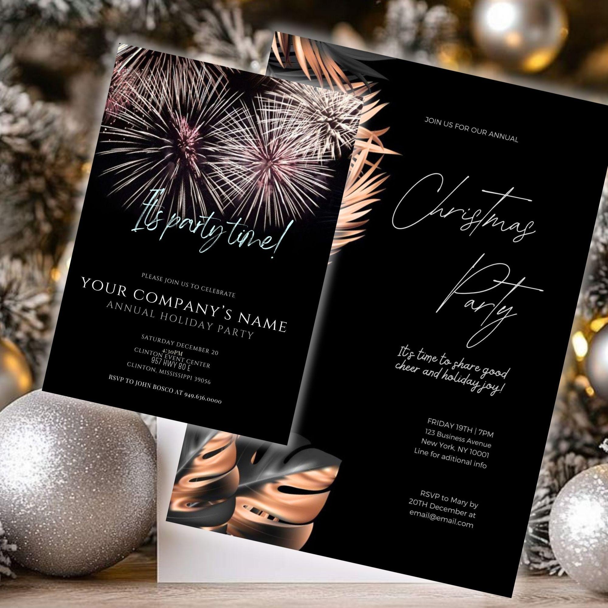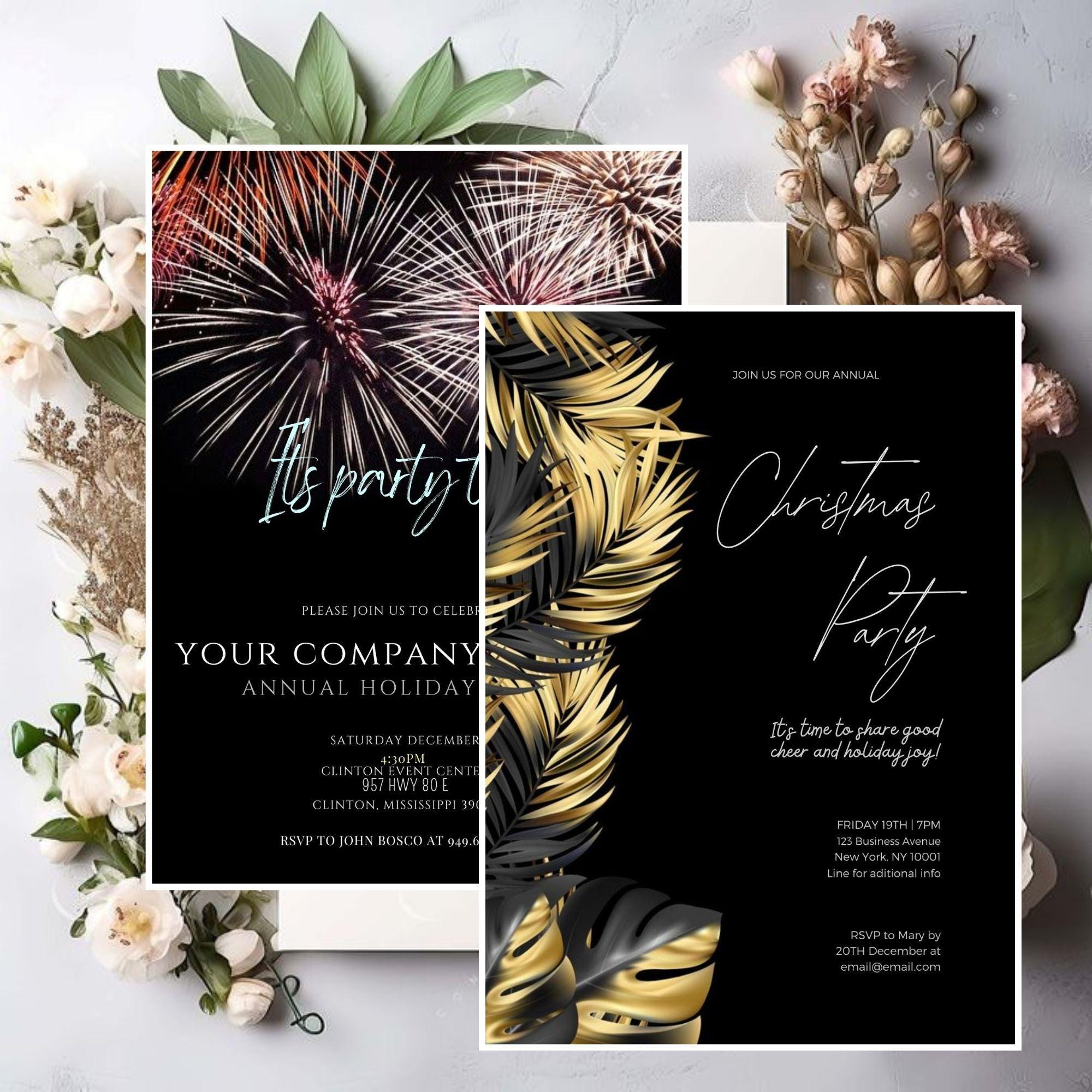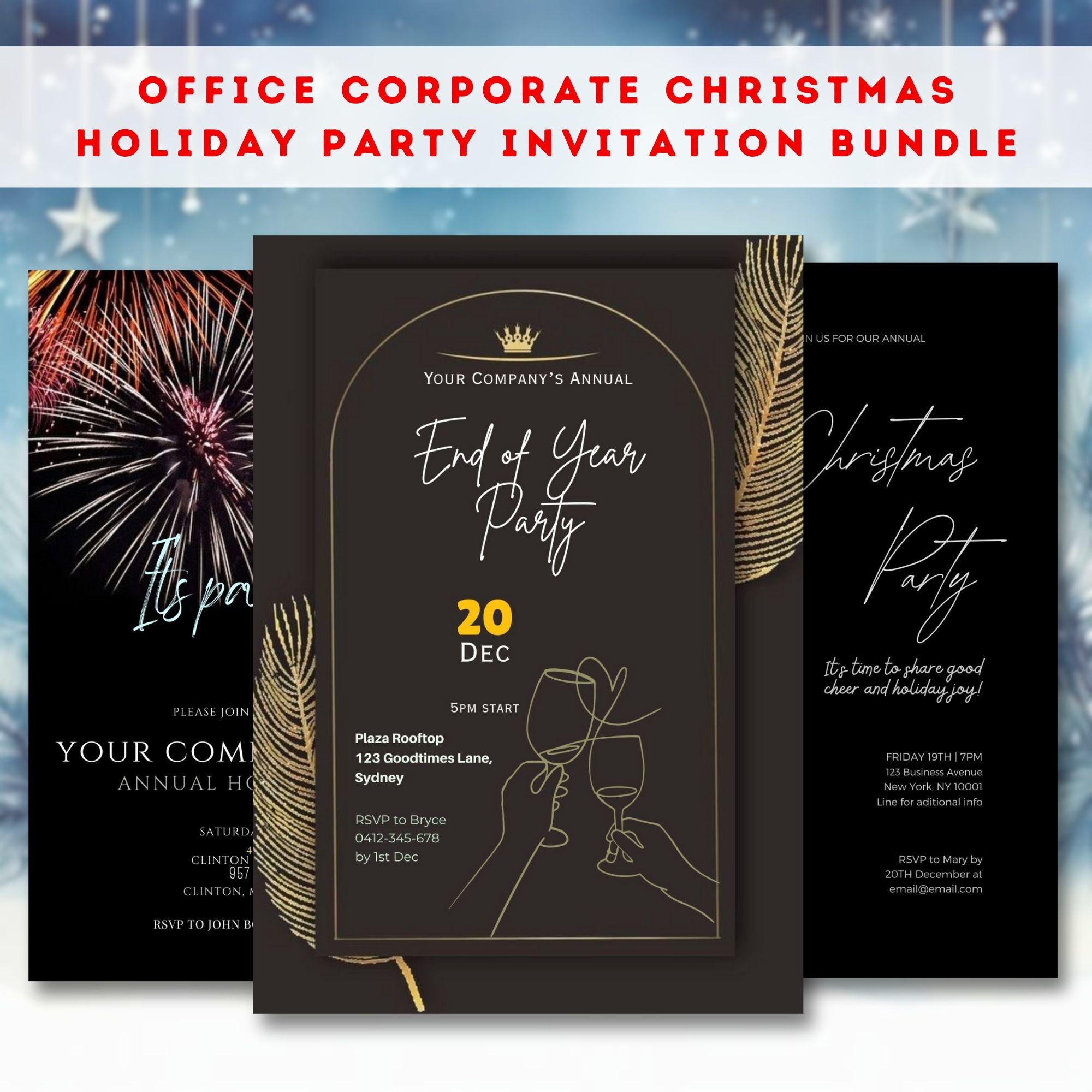 Corporate Holiday Party Invitation Bundle | Editable Canva Template (Digital Download)