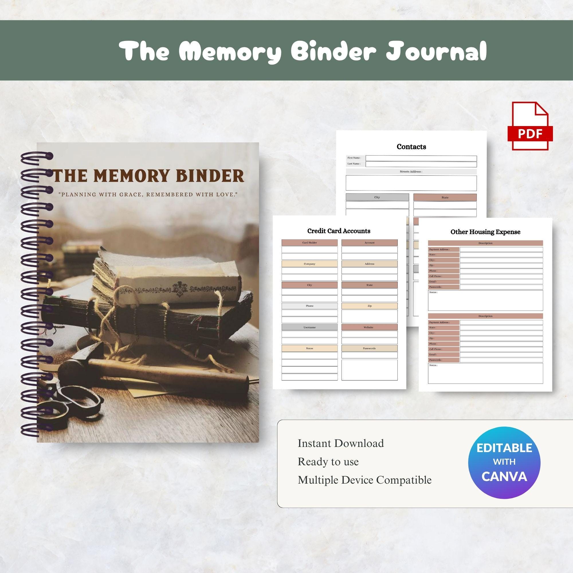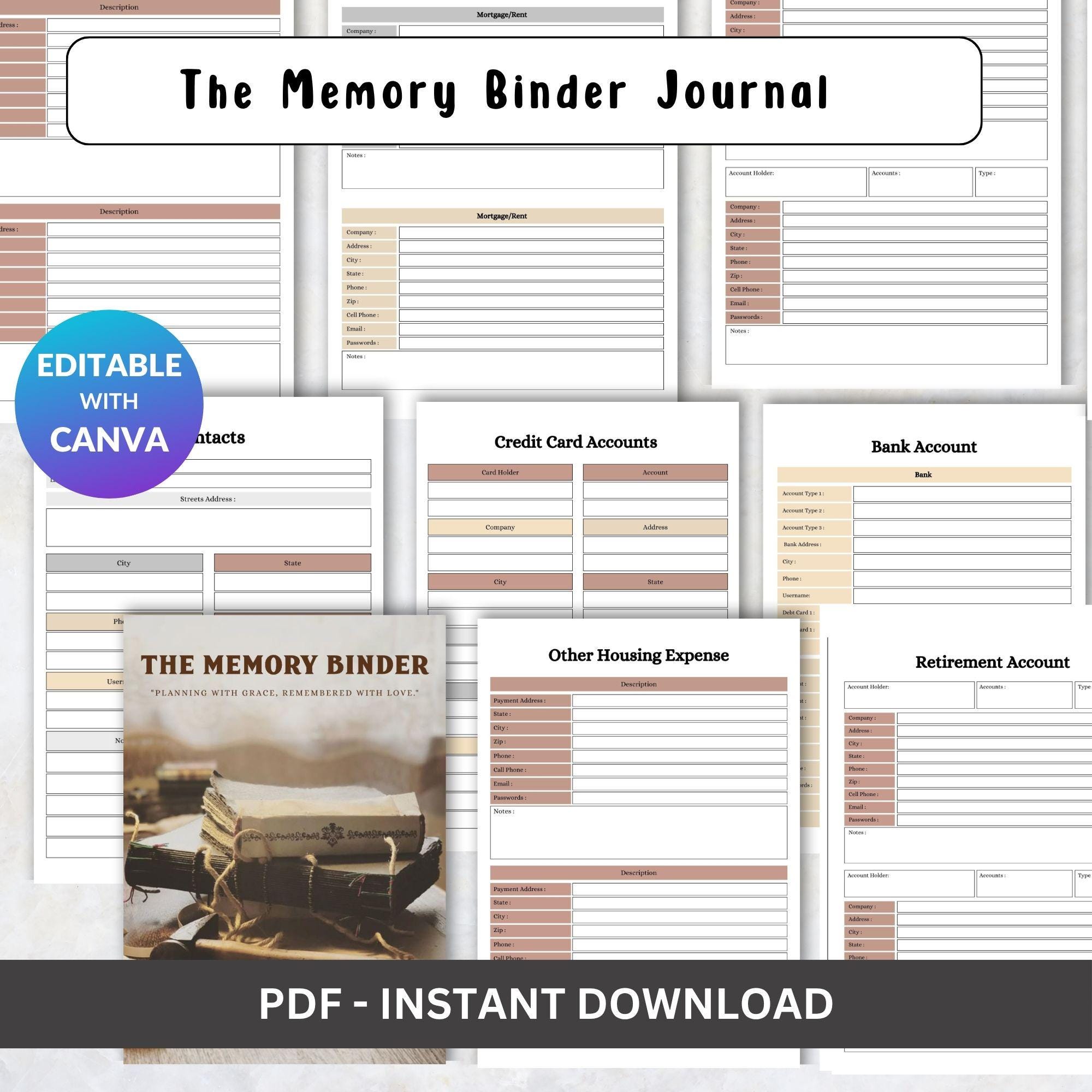The Memory Binder | Printable Family Keepsake Journal | Legacy Memory Book | Digital Life Story Organizer for Families & Loved Ones