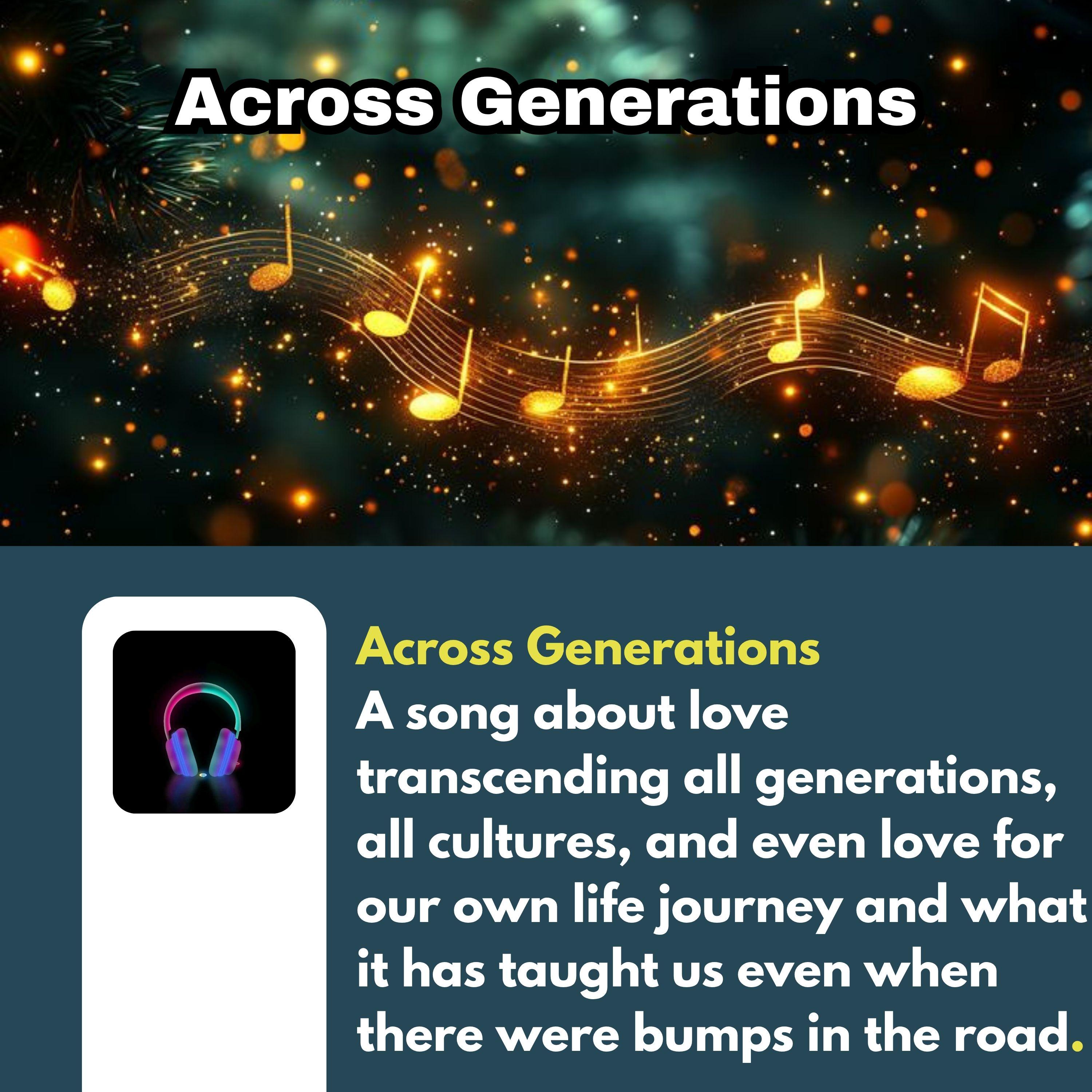 Across Generations is a heartfelt and inspiring song celebrating love that transcends time, cultures, and life’s challenges. It reflects on the connections that bind us to family, community, and even ourselves, highlighting the lessons learned from our life journey even when the road has been rocky.