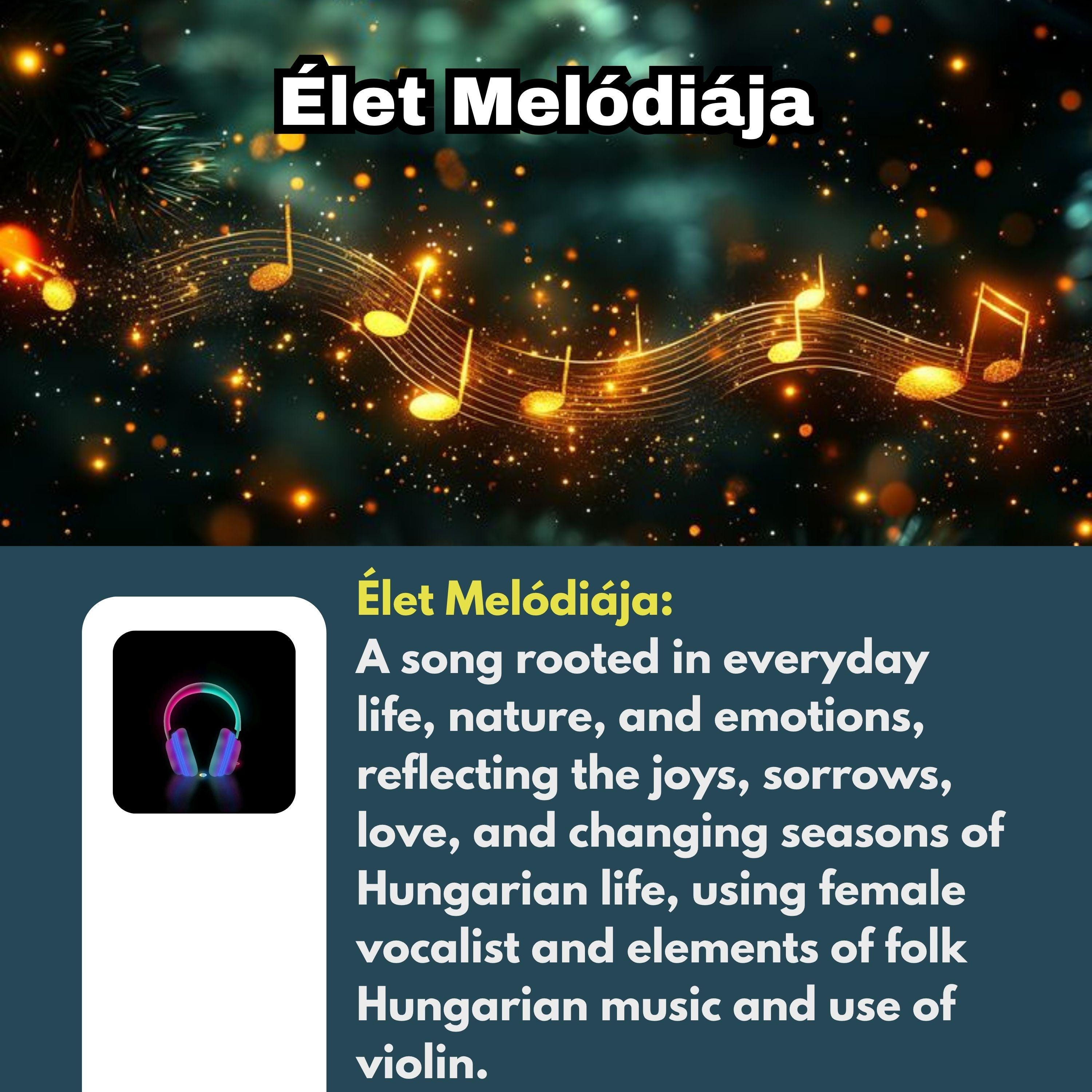 Élet Melódiája is a soulful Hungarian song inspired by everyday life, nature, and the full spectrum of human emotions. With tender female vocals, expressive violin, and authentic folk elements, it beautifully reflects the joys, sorrows, love, and ever-changing seasons of Hungarian culture.