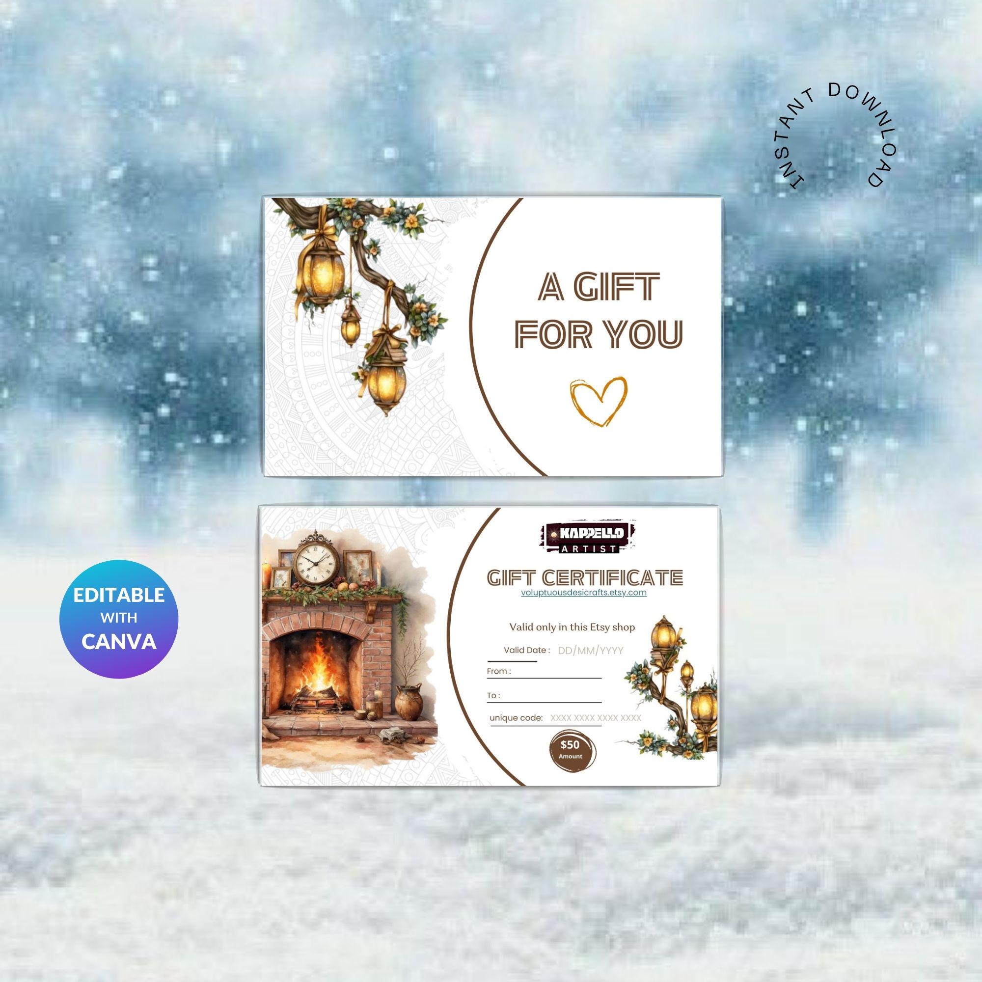 Cozy Fireplace 50 Dollars Gift Certificate | Winter Holiday Present (Digital)