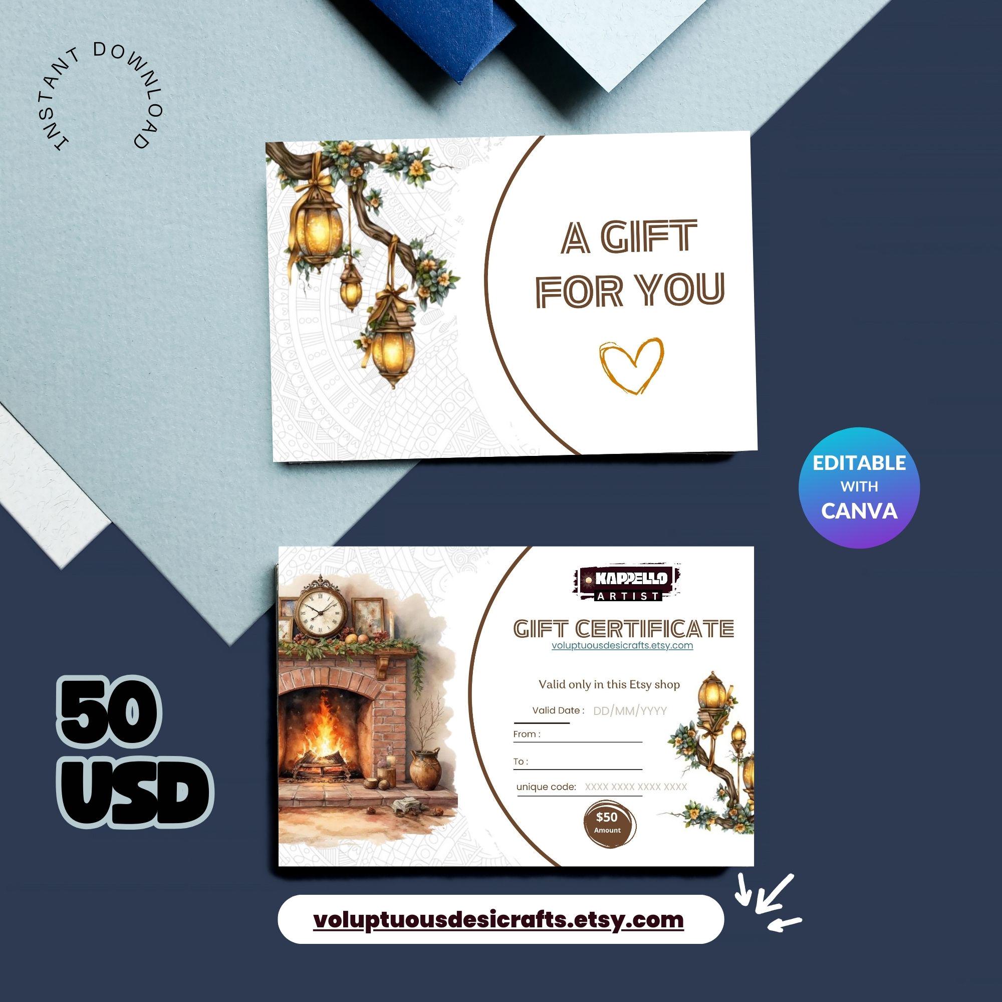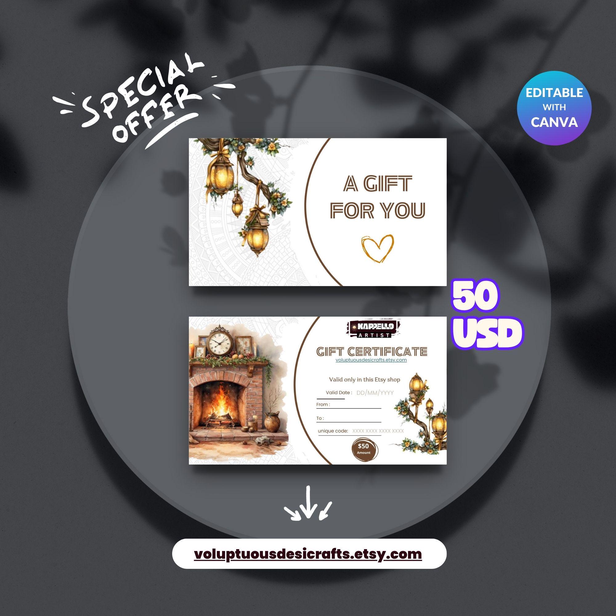 Elevate your shop with a sleek and professional $50 digital gift voucher that’s easy to customize and simple to deliver.