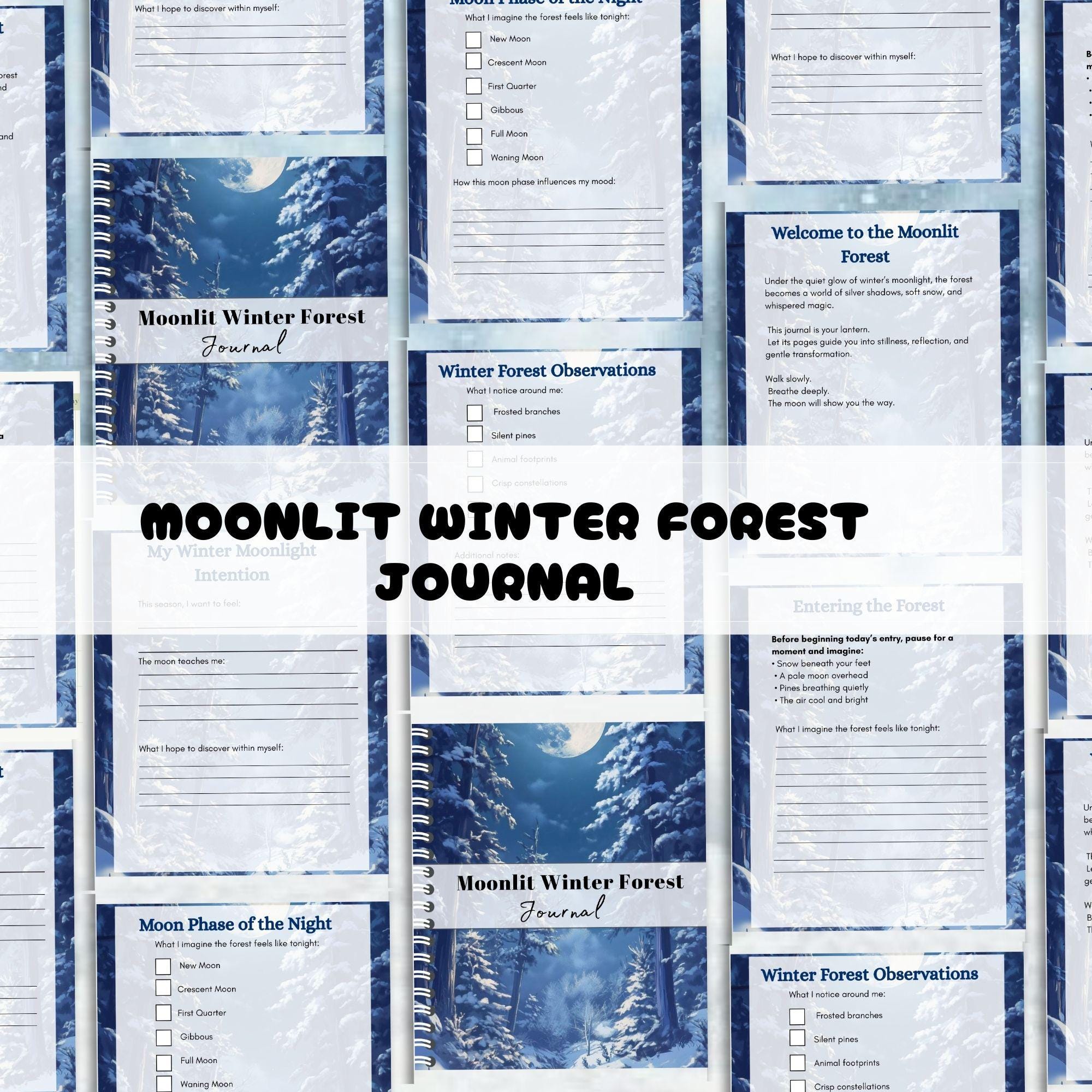 Step into a world of quiet magic and winter serenity with the Moonlit Winter Forest Journal a beautifully crafted writing companion inspired by snowy woods, silver moonlight, and the peaceful hush of cold winter nights. This journal is designed for dreamers, writers, nature lovers, and anyone who finds comfort in the stillness and wonder of the winter season.