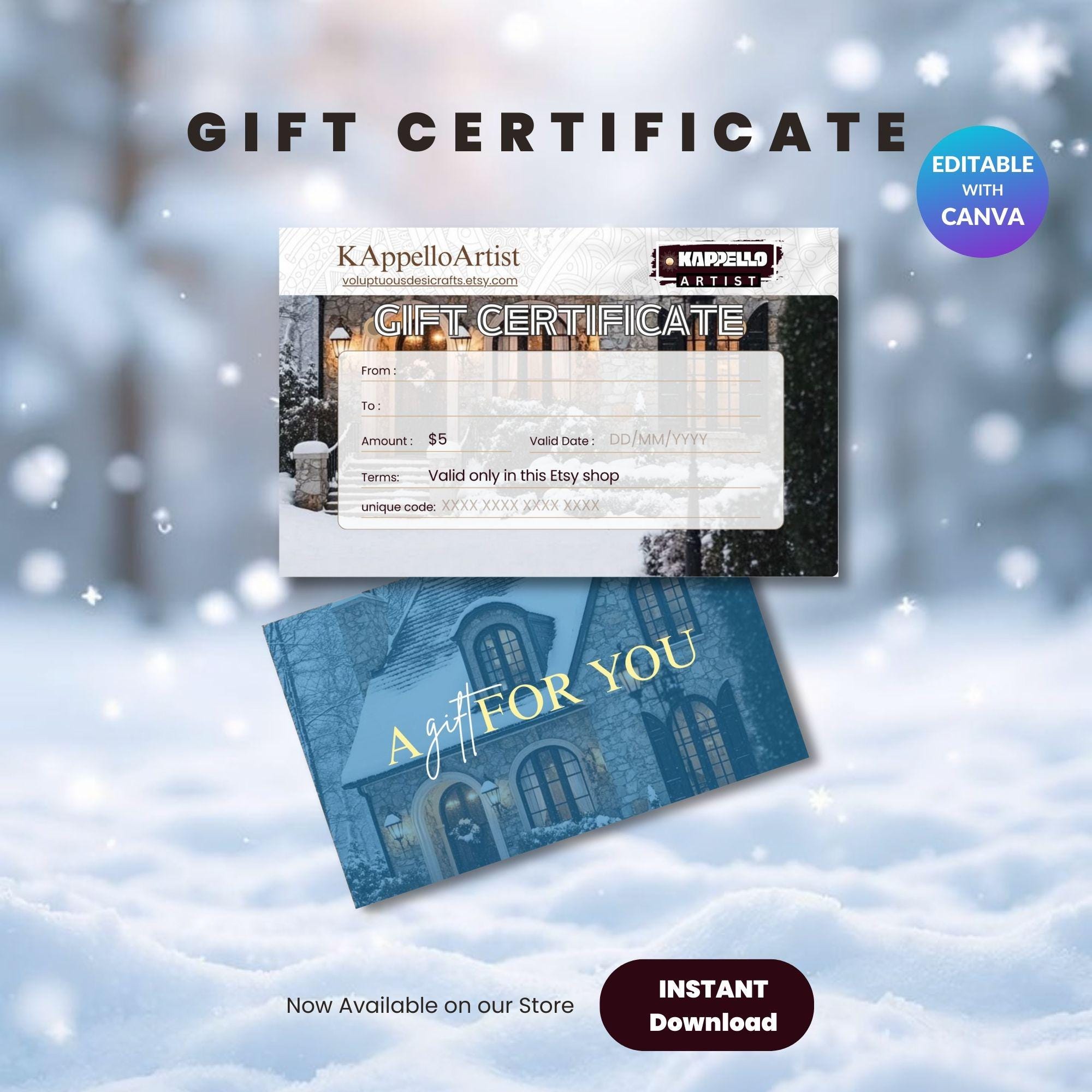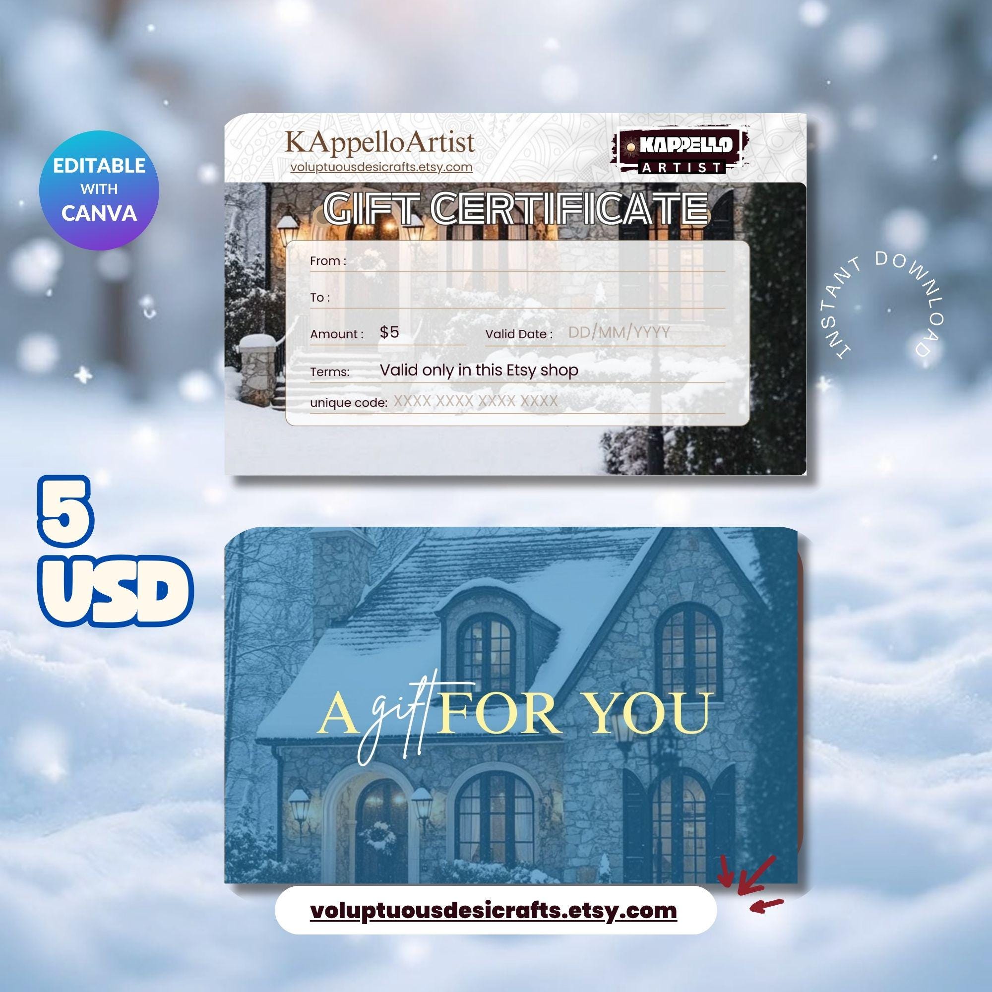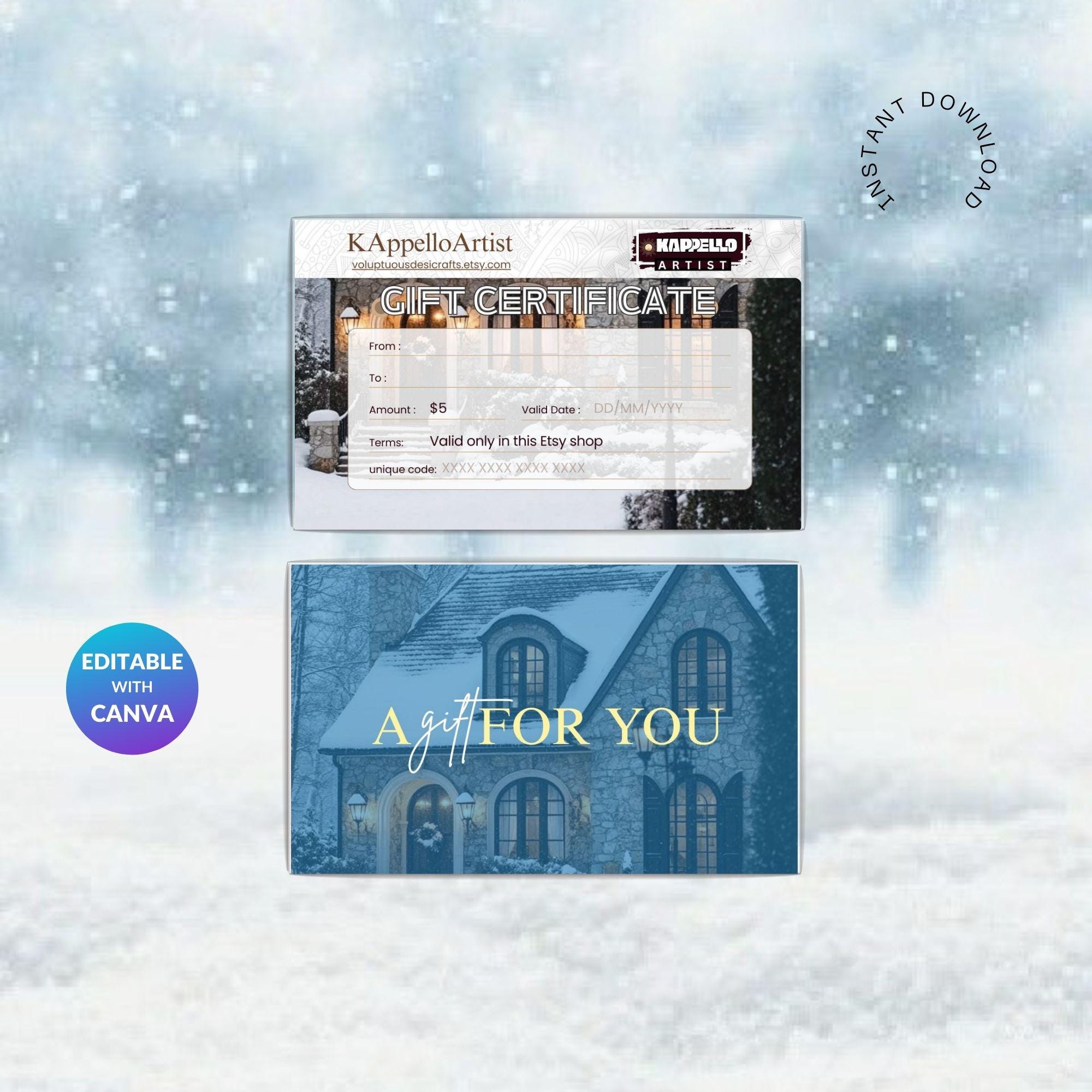 Give the gift of cozy winter magic with the Winter Wonderland $5 Digital Gift Certificate a thoughtful, flexible, and festive gift for anyone on your list. Inspired by snowy landscapes, twinkling lights, and the calm of a peaceful winter evening, this gift card is perfect for spreading warmth and joy during the holiday season or any winter celebration.